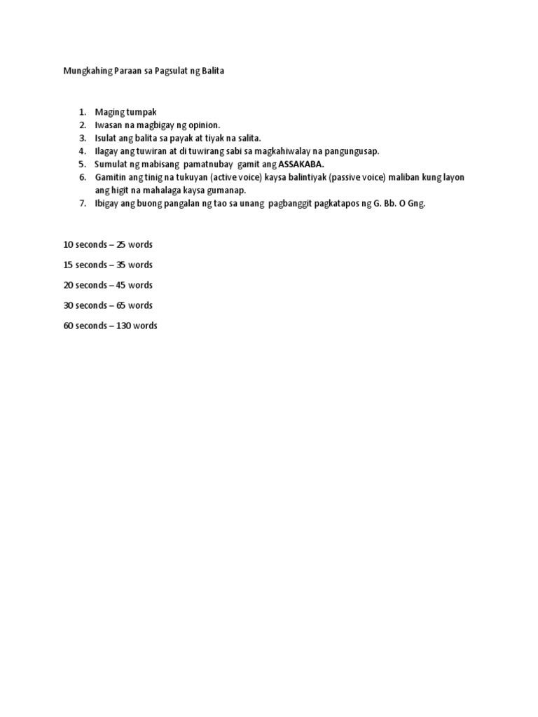 Mungkahing Paraan Sa Pagsulat Ng Balita Pdf